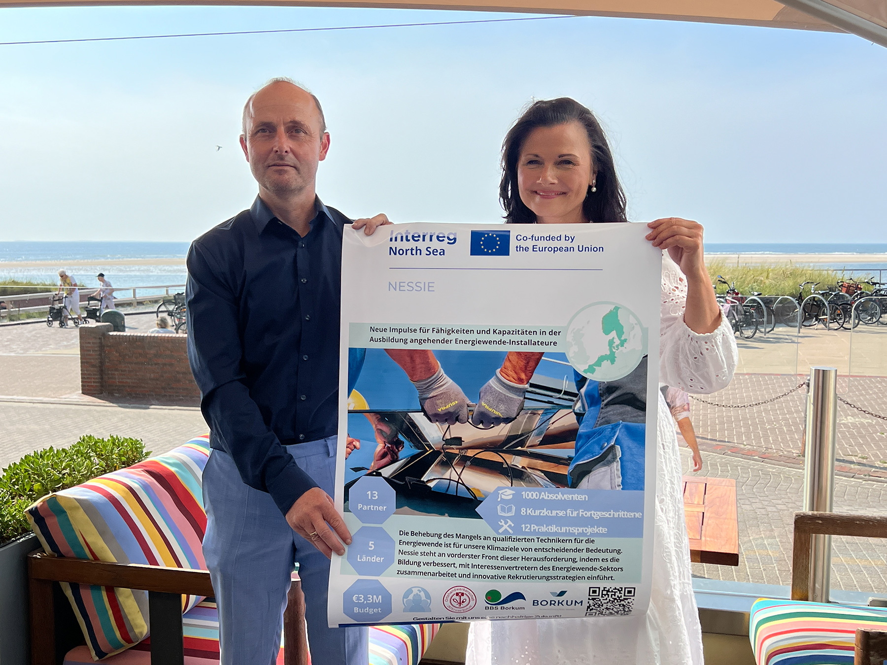 Im Rahmen von NESSIE ist Borkum einer der sogenannten „Leuchtturm-Standorte“, an denen Trainings- und Qualifizierungsmaßnahmen zur Energiewende direkt umgesetzt werden – also mit konkretem Praxisbezug vor Ort.
